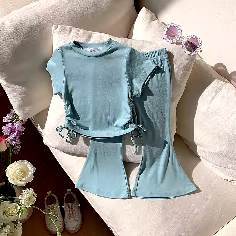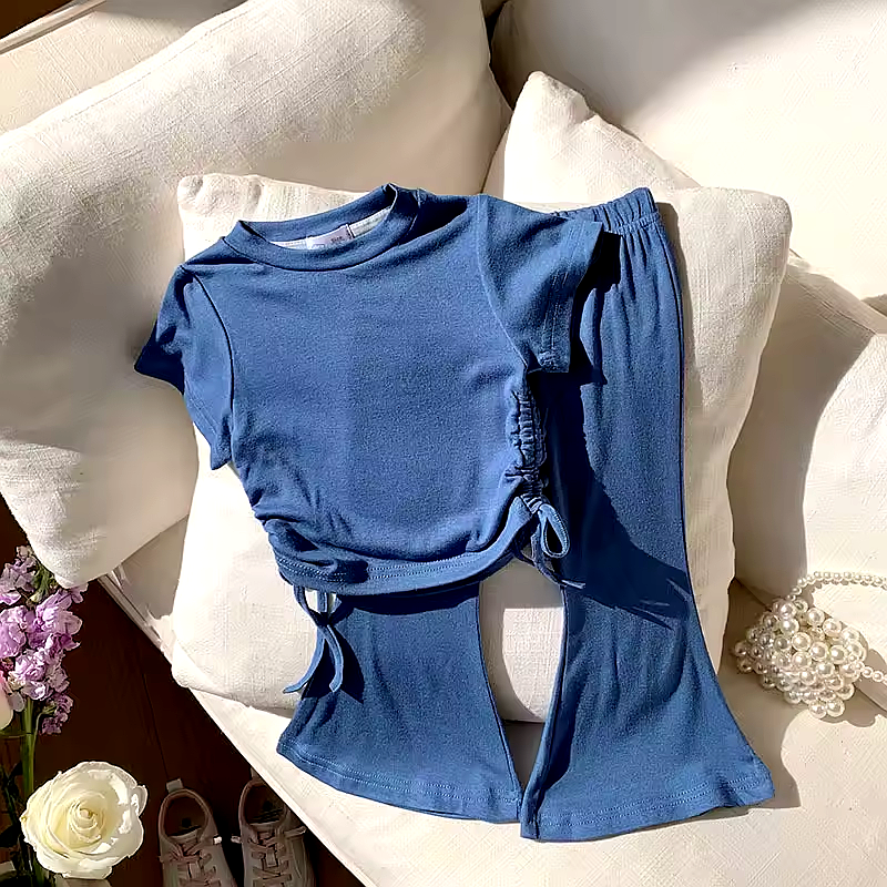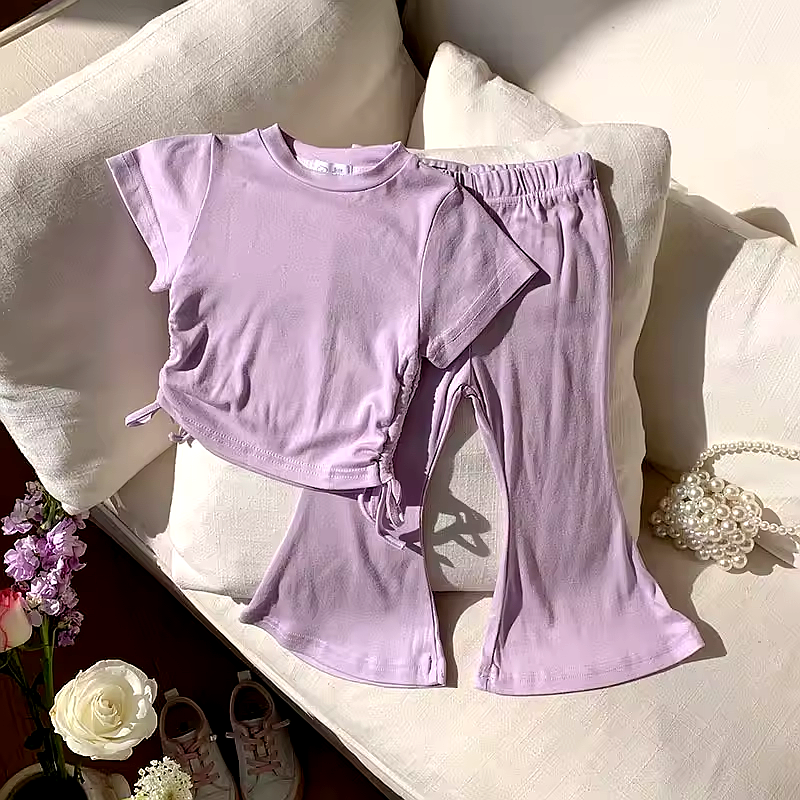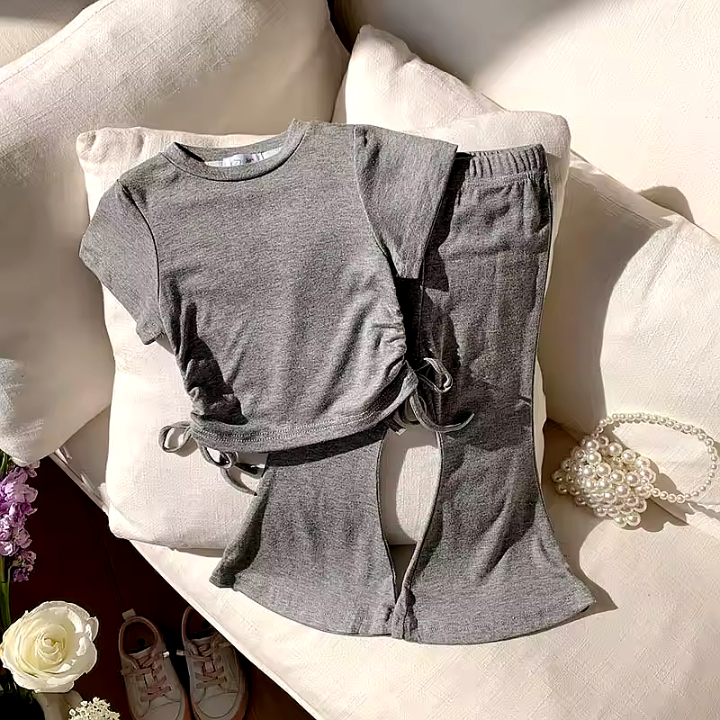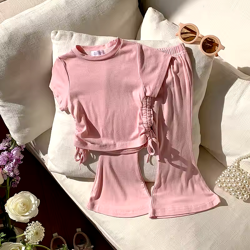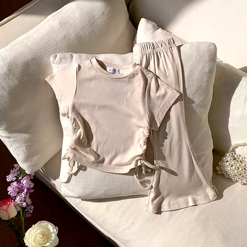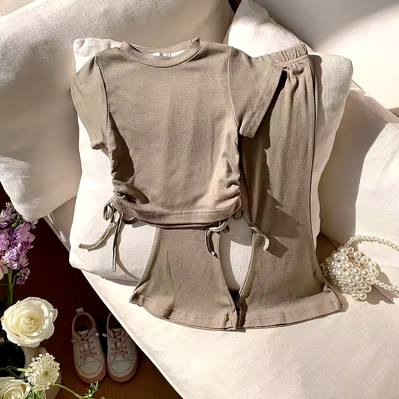 Mjukt 2-delat Set för Barn – Ribbad Tröja & Byxor i Bomull